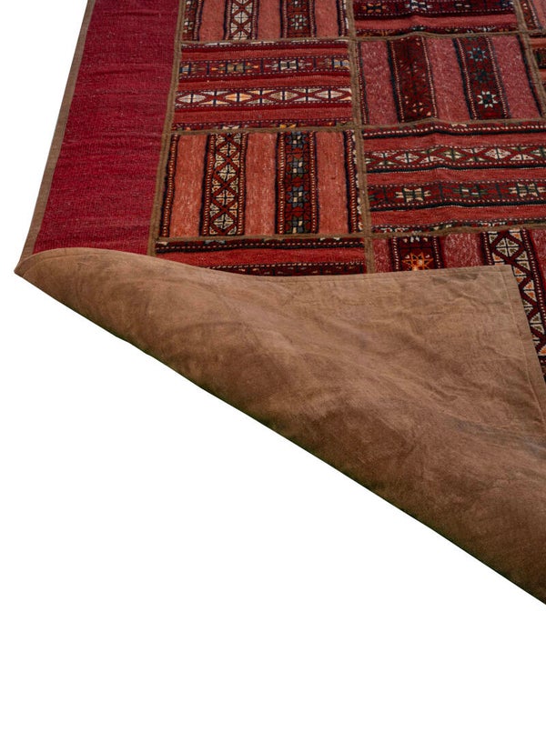 Persian Patchwork Rug (340cm x 250cm) (340 x 247 cm)- Red Modern Patchwork Carpet (11.1 x 8.2 ft) (11.1 x 8.1 ft)
