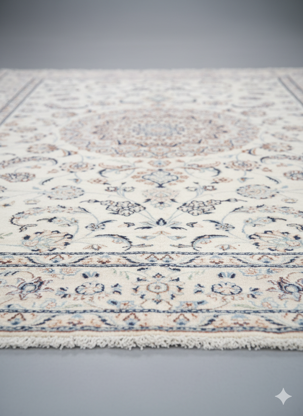 Nain (295 x 195 cm) - White Persian Handmade Carpet (9.6 x 6.3 ft)