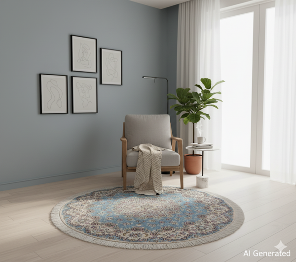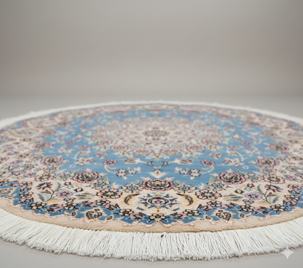 Round Nain Rug (145 x 145 cm) - Persian Circular Handwoven Rug (4.7 x 4.7 ft)