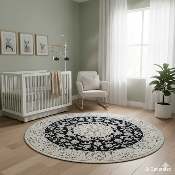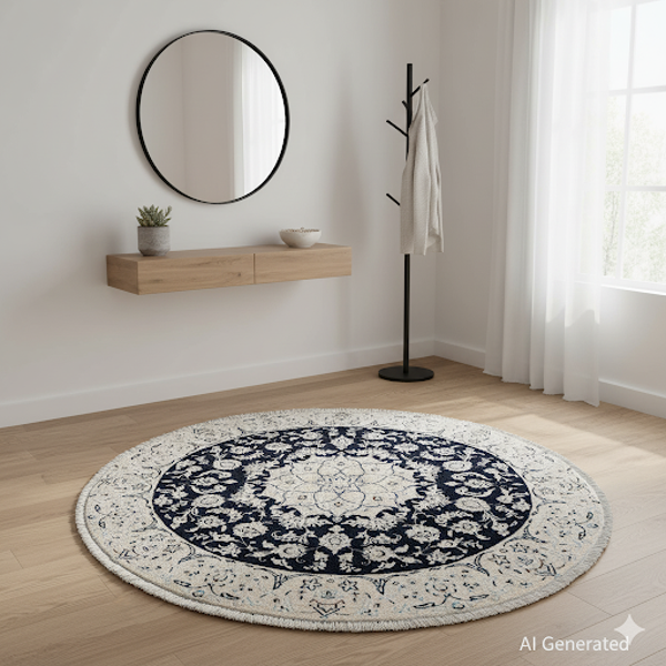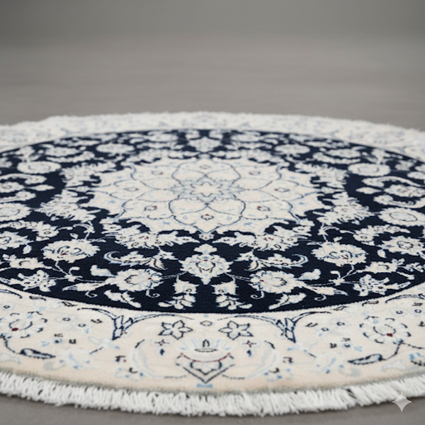 Nain Round Rug (140 x 140 cm) - Black Circular Handmade Rug (4.5 x 4.5 ft)