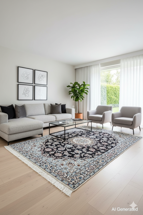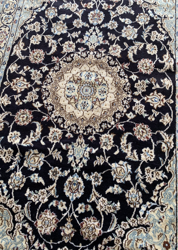 Nain (186 x 113 cm) - Black and White Handmade Rug(6.1 x 3.7 ft)