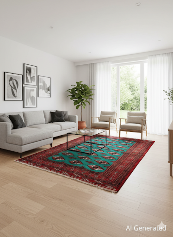 Turkmen (185 x 135 cm) - Light Green Persian Hand-Woven Rug (6 x 4.4 ft)