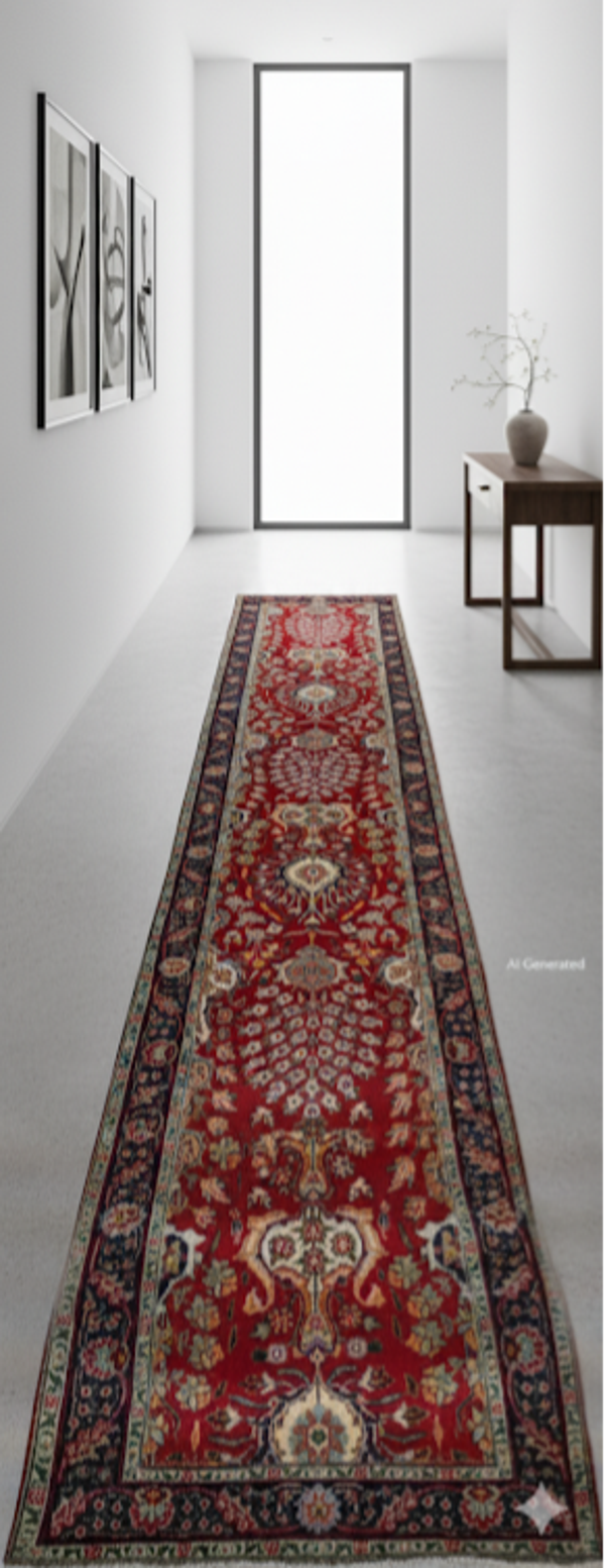 Tabriz Runner (393 x 85 cm) - Red Persian Long Rug (12.8 x 2.7 ft)