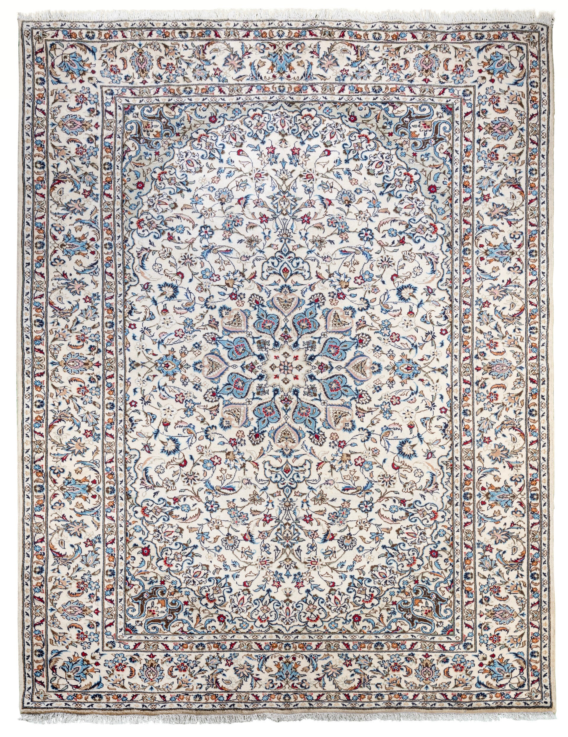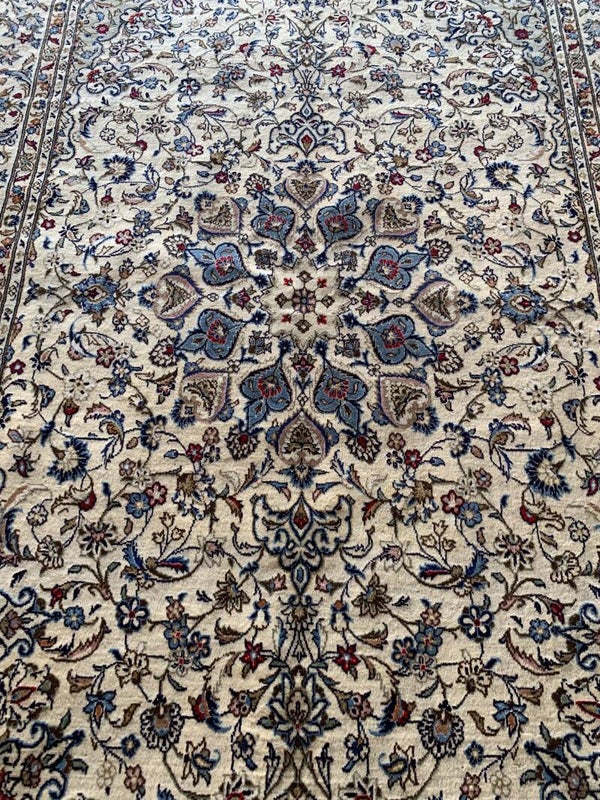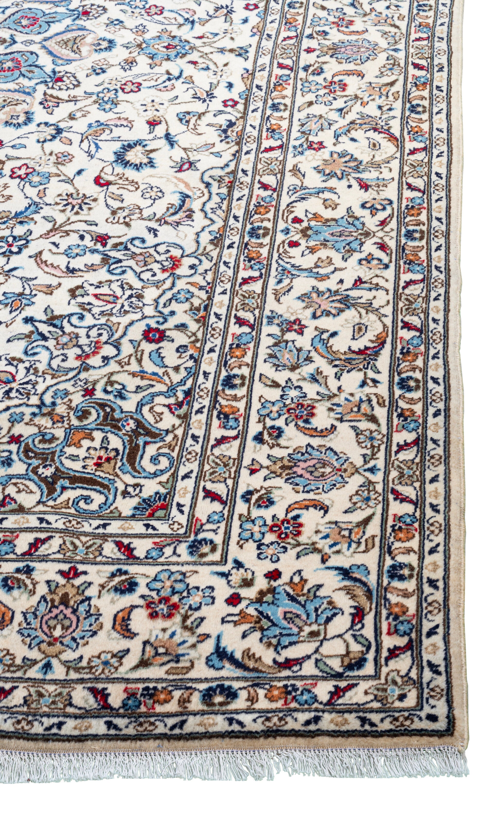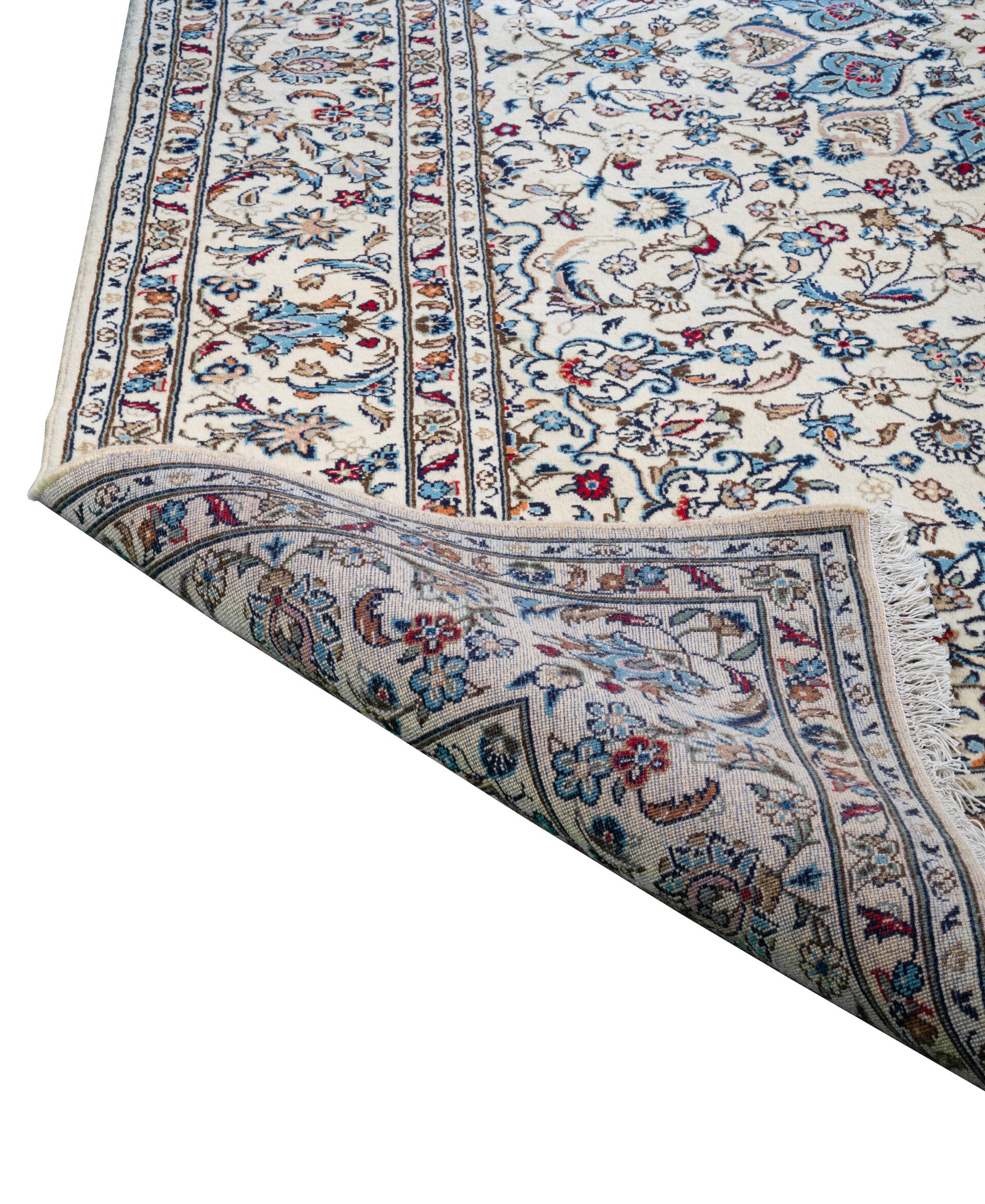 Kashan (310 x 200 cm) - White Blue Oriental Handmade Rug (10.1 x 6.1 ft)
