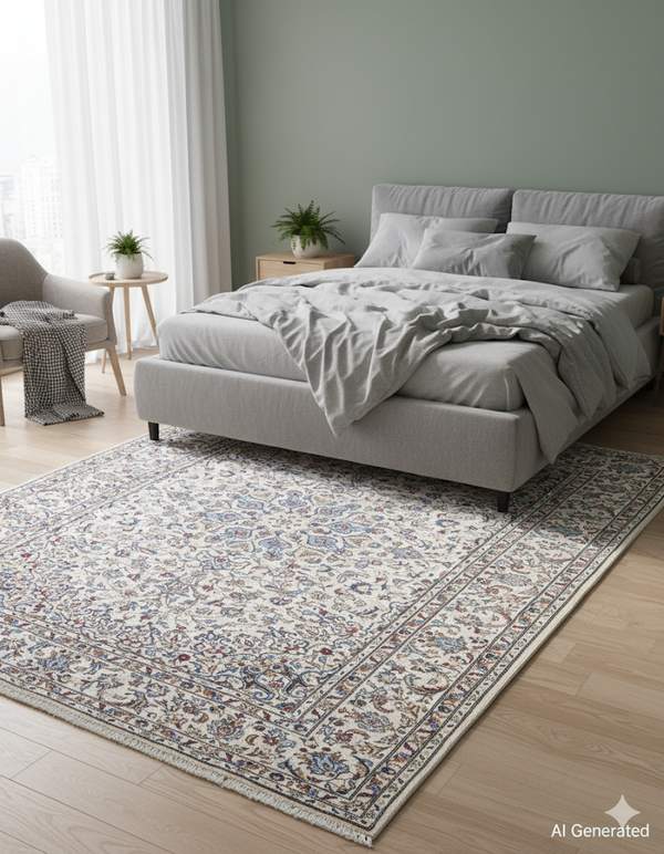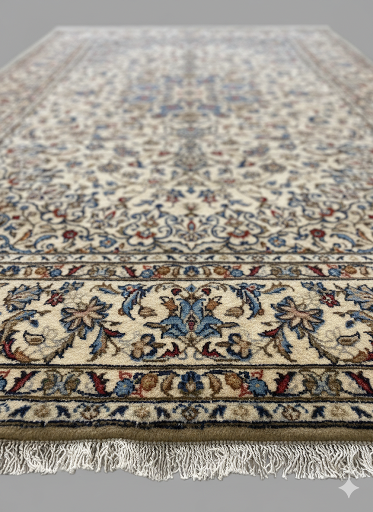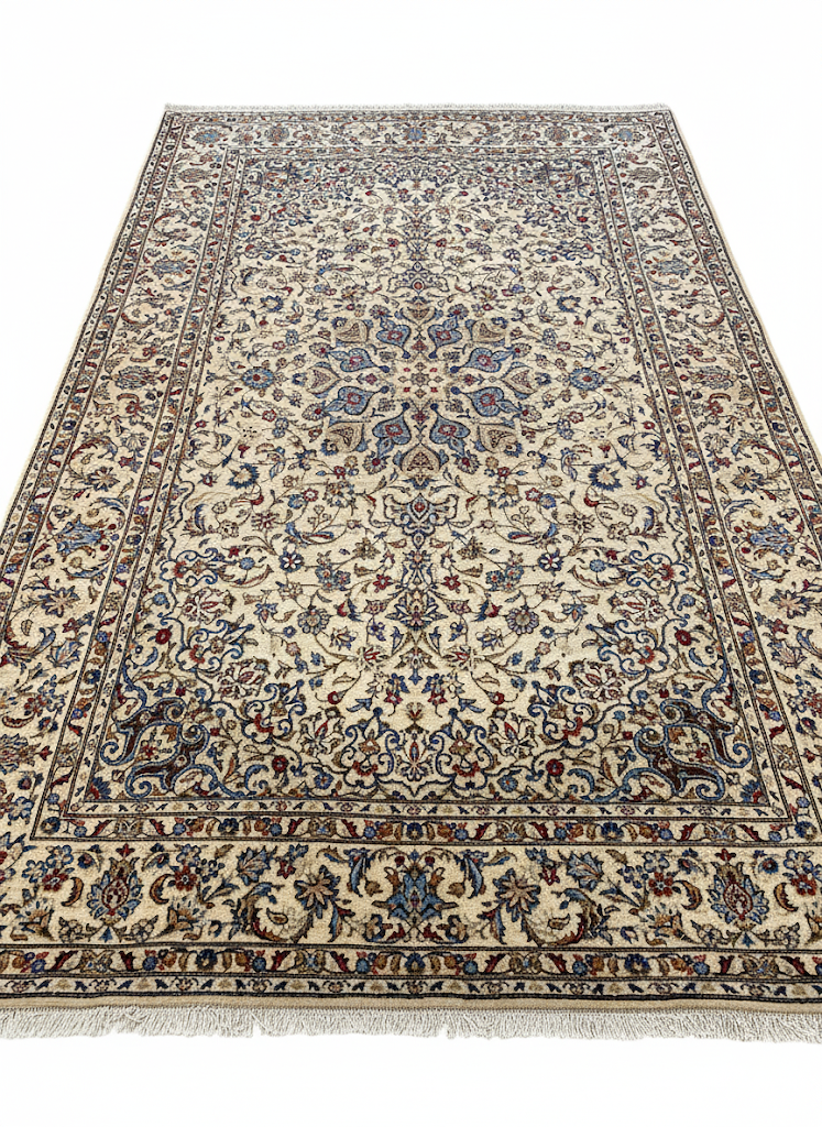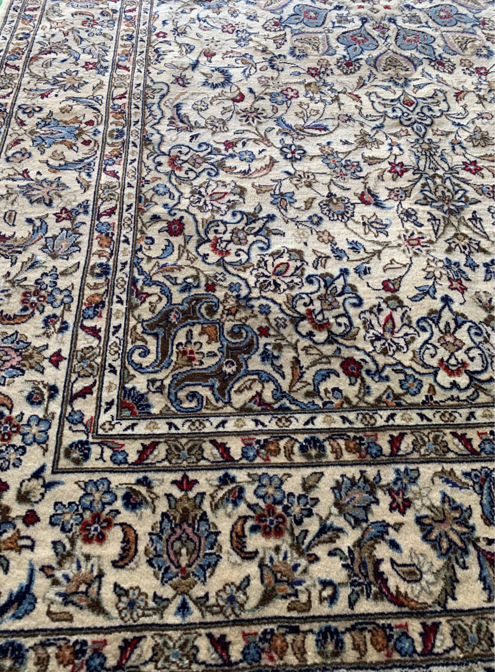 Kashan (310 x 200 cm) - White Blue Oriental Handmade Rug (10.1 x 6.1 ft)